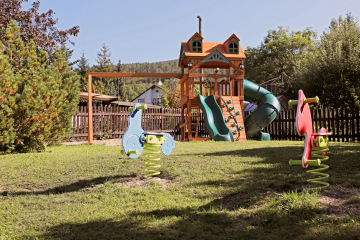 Hned vedle hotelu mají ti nejmenší k dispozici prostorné venkovní hřiště. Děti si mohou hrát na prolézačkách, skákat na trampolínách nebo si užít velké pískoviště. Rodiče mezitím mohou pohodlně posedět v letním altánu, dát si něco k pití a vychutnat si výhled na krkonošské hory.